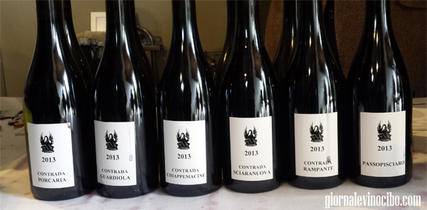 The 5 Crus of Andrea Franchetti and the Passopisciaro are indicative of the 2013 vintage of the volcanoe red wines. Among these the one I prefer at the moment is the Rampante with its elegant and fresh intensiveness both olfactorial and palate. Very enjoyable the Guardiola rich in spiciness, the Chiappemacine is a sharp blade, the Sciaranuova, besides its great freshness shows great body, the Porcaria is the longest in concentration.