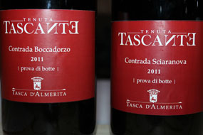 L’assaggio dei vini delle varie Contrade ’11 di Franchetti, così come gli altri vini dello stesso millesimo, hanno evidenziato un’annata molto interessante e di grandissima prospettiva. All’assaggio il  Passopisciaro ’09 è vivo di ribes e macchia mediterranea, al palato è di freschezza e sapidità, mentre tra i quattro Cru di Franchetti il Porcaria ’09   è il più concentrato prodotto tra i 700 e gli 800 metri s.l.m. si esprime al naso con intense sensazioni minerali completate da note di ciliegie e lamponi, in bocca è pieno e di lunga scia. Il Franchetti ’09 ottenuto da Petit Verdot e Cesanese di Affile è un vino di particolare espressione, intrigante connubio tra finezza, intensità e consistenza gustativa.