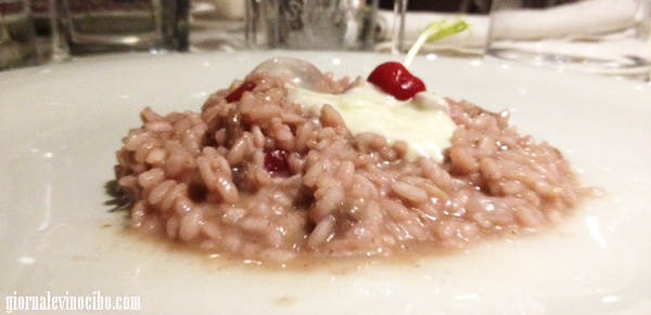 Più decisa la presenza della Val di Cembra con la sua Nosiola, incorporata in una piccola bolla di gelatina con la quale si era invitati a mantecare il “Messaggero Alato degli Dei” , riso vialone nano allo stracotto di cervo, eccellente nella presentazione oltre che nel gusto degli ingredienti, mai in contrasto, in bocca, con il distillato citato. La Cantina Zanotelli ha riempito i calici del suo Mùller Thurgau.