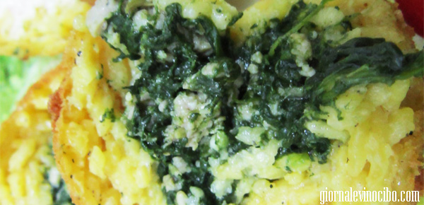 Arancina con spinaci e salsiccia.