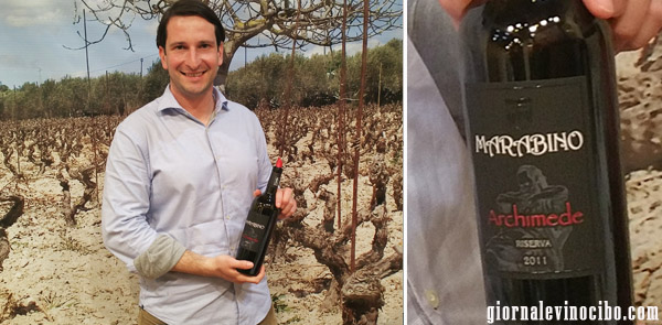 26- L’Archimede Nero d’Avola Riserva 2011 Marabino (Sr) debutta con la nuova etichetta, intenso e varietale di ciliegia e marasca, con note agrumate, di cacao ed erbe aromatiche. Ha sorso di fresco di frutto balsamico e si allunga mirabilmente nel finale sapido.