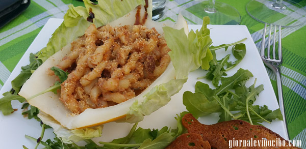Interessantissimi gli altri piatti presentati: le busiate di sarde, pachino, uva passa, pistacchio e pinoli e caponata del ristorante Il Contesto