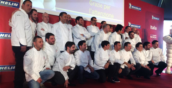 Le nuove stelle: Dolce Vita a Naturni in provincia di Bolzano, Alpen Royal a Selva di Valgardena in provincia di Bolzano, L’argine a Vencò a Dolegna del Collio in provincia di Gorizia, I due buoi ad Alessandria, Acquerello a Fagnano Olona in provincia di Varese, Armani a Milano, Seta a Milano, Toku a Milano, Aqua Crua a Barbarano Vicentino, Aga a San Vito del Cadore, Oro a Venezia, Dopolavoro a Venezia, Meo Modo a Chiusdino in provincia di Siena, Borgo San Jacopo a Firenze, Vespasia a Norcia, La Tana ad Asiago,Enoteca al Parlamento a Roma, Osteria Arbustico a Valva in provincia di Salerno, Re Mauri a Salerno, Don Geppi a Sant’Agnello in provincia di Napoli, Bacco a Barletta in provincia di Bari, Cielo di Ostuni, Signum di Salina in provincia di Messina, Shalai di Linguaglossa in provincia di Catania.