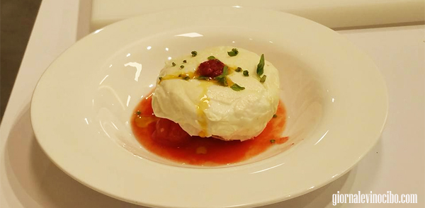 Disarmante la semplicità con la quale Pino Cuttaia ha intrattenuto il pubblico con il racconto dei vari piatti in preparazione, il percorso è iniziato con “La pizzaiola di merluzzo all’affumicatura di pigna” un simpaticissimo piatto , “La nuvola di caprese” ha sorpreso per l’idea e la fragranza del gusto, entrambi ricchi di tendenze dolci si sono perfettamente sposati con il Metodo Classico brut Donnafugata.