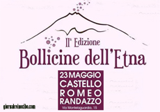 E’ un appuntamento di sicuro interesse la seconda edizione di “ Bollicine dell’Etna” organizzato dall’Enoteca Regionale Siciliana per la Sicilia Orientale che si svolgerà lunedì 23 maggio al castello Romeo di Randazzo. Il focus sulle bollicine dell’Etna sarà aperto dalle ore 10 per gli operatori di settore, giornalisti e ristoratori, dalle ore 15,30 l’apertura al pubblico.