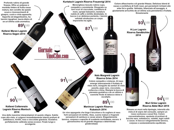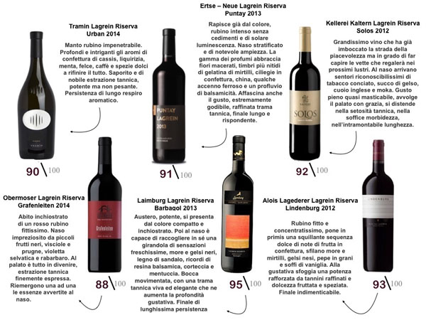 Laimburg Lagrein Riserva Barbagol 2013 Austero, potente, si presenta dal colore compatto e inchiostrato. Poi al naso è capace di raccogliere in sé una girandola di sensazioni freschissime, more e gelsi neri, legno di sandalo, ricordi di resina balsamica, corteccia e mentuccia. Bocca movimentata con una trama tannica viva ed elegante che ne aumenta la profondità gustativa. Finale di lunghissima persistenza