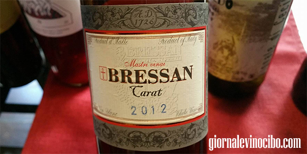 Bressan Carat Bianco Venezia Giulia 2012: ottenuto da un blend di friulano, malvasia e ribolla gialla, cervellotico ed affascinante, è ricco di pesca, albicocca e melone giallo di buona maturazione, all’assaggio è morbido e vellutato con fresche sensazioni di mandorla.