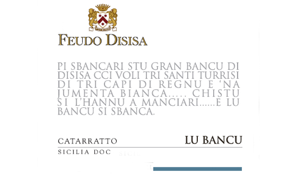 I nomi dei due nuovi vini, prodotti da queste due uve autoctone, s’ispirano ad una leggenda siciliana che narra della presenza all’interno di una grotta a Feudo Disisa di un tesoro inestimabile, un gran masssenti di brillanti e monete d’oro chiamato Lu Bancu di Disisa. A questi vini è affidato il compito di far comprendere il tesoro che i vitigni autoctoni siciliani rappresentano nelle loro più autentiche espressioni.
