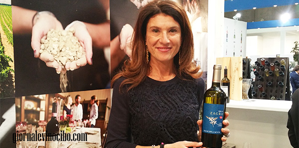 Nero Luna Brut Feudo Principi di Butera, nuovo metodo charmat che è stato presentato alla stampa allo stand dell’azienda. Il vino base si ottiene da uve nero d’avola vinificate in bianco, dopo un periodo di affinamento sui lieviti di circa 3-4 mesi è spumantizzato in autoclave dove sosta per circa 45 giorni. Bello da bere per il fine il perlage, le sensazioni olfattive di mirtilli, frutti di bosco, note agrumate e speziate, ha bocca equilibrata.