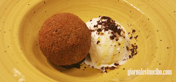 E’ superlativo per originalità, croccante e sinuoso con persistenza aromatica intensa elevata e contrasto di sapori, l’arancina al nero di seppia con gambero rosso di Mazara Sfizio di Venere, in accostamento al gelato all’olio extravergine d’oliva e polvere di olive disidratate.