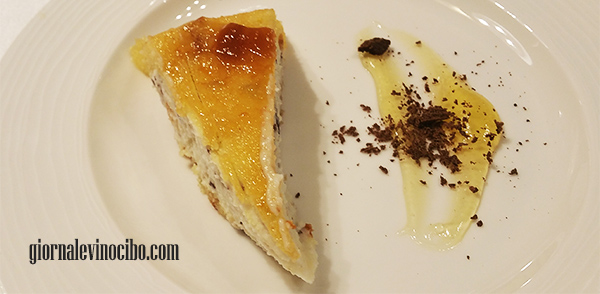 La chiusura è affidata alla cassata di ricotta con copertura di arance, fresca e giustamente zuccherina.