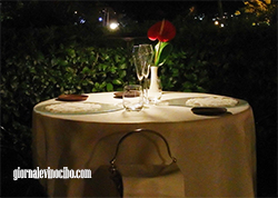Conclusioni: il ristorante ha opportunamente tagliato i costi delle degustazioni, ma rimane certamente su livelli di prezzo complessivo importanti, per le offerte alla carta e soprattutto per quanto riguarda la lista dei vini; a compensare, però, l’eleganza del luogo e il tipo di servizio, che sono senz’altro i migliori della provincia, stellati inclusi.