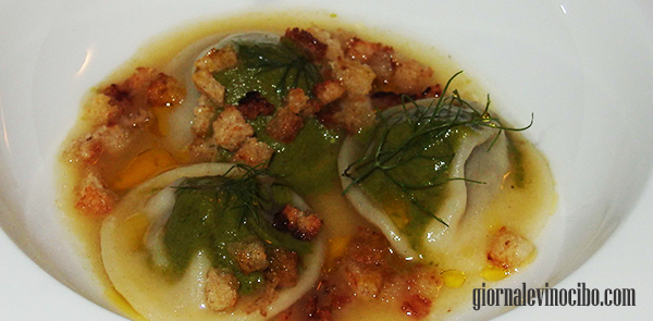 Tipico ma non troppo (Ravioli fondenti di sarde e finocchietto selvatico) Un classicissimo della cucina palermitana rivisitato, molto bene però. Molto buono.
