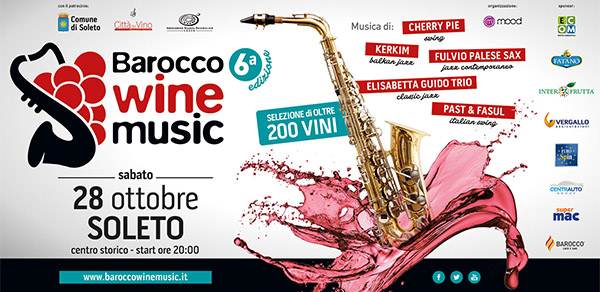Il 28 ottobre 2017 ritorna il Barocco Wine Music, a partire dalle ore 20:00, lungo i vicoli del centro storico di Soleto, si svolgerà la 6 edizione del Barocco Wine Music, dove tradizione, estro artistico e cultura enoica si incontrano, dando vita ad una sublime degustazione, narrante le identità della PugliaUn itinerario mirato alla scoperta dei percorsi più inebrianti del vino, quelli che creano la millenaria storia italiana, ospitando quest’anno Puglia in Rosè, associazione impegnata da anni nella internazionalizzazione delle produzioni enoiche, con le sue 60 aziende socie, tra le principali produttrici di vino in Puglia.