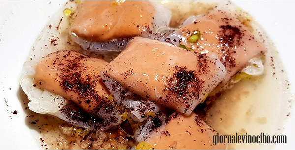 Segue Pino Cuttaia, chef a due stelle de La Madia a Licata (Ag), con la sua “Scala Dei Turchi”. Calamaro, ricci e spuma di mare. Un connubio di tendenza dolce, sapidità ed aromaticità. Preparazione semplicemente superlativa.