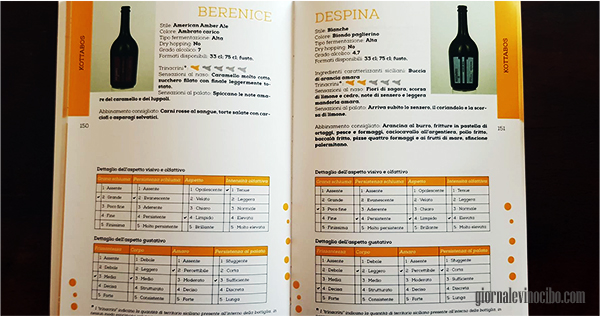 La scheda di degustazione con l’aspetto visivo, olfattivo e gustativo indica alcuni parametri fondamentali per poterne facilmente intuire le caratteristiche qualitative, interessante, inoltre, la presenza per ogni birra dell’abbinamento consigliato.