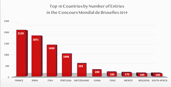 La Svizzera, paese ospite, ha registrato un numero record di iscrizioni con un massimo storico di quasi 600 vini (contro i 166 nel 2018), la Svizzera ha superato la Cina e si è aggiudicata il 5° posto per numero di iscrizioni, preceduta solo da Francia, Spagna, Italia e Portogallo.