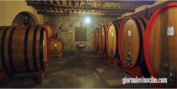 Nel frattempo siamo all’interno del fabbricato, prima le stanze di fermentazione, poi la bottaia di recente costruzione, che si trova al di sotto di un vecchio casale di pietra, con botti di rovere di Slavonia da 30 e 50 hl. Mi impressiona la pulizia. Impercepibili i tipici odori di cantina, tutte le superfici sono tirate a lustro.