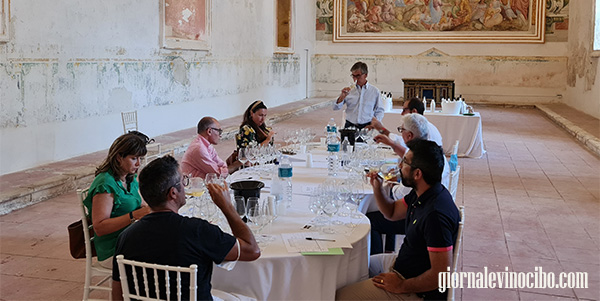 Nella splendida sala del refettorio dell’Abbazia ho avuto il piacere di presiedere la giuria formata da otto giudici tra giornalisti e sommelier, con me Valeria Lopis, Marcello Malta, Fabio Cristaldi, Antonino Maggio, Dario Costanzo, Amanda Arena e Domenico Vecchio. Gli undici campioni grillo, tutti anonimizzati, delle annate ’20, ’19 e ’18 sono stati valutati con la scheda internazionale di degustazione. Dopo circa un paio d’ore di lavoro abbiamo decretato “Miglior grillo delle Terre Sicane”, con il punteggio medio di 88,66, il Rahama ’20 De Gregorio.